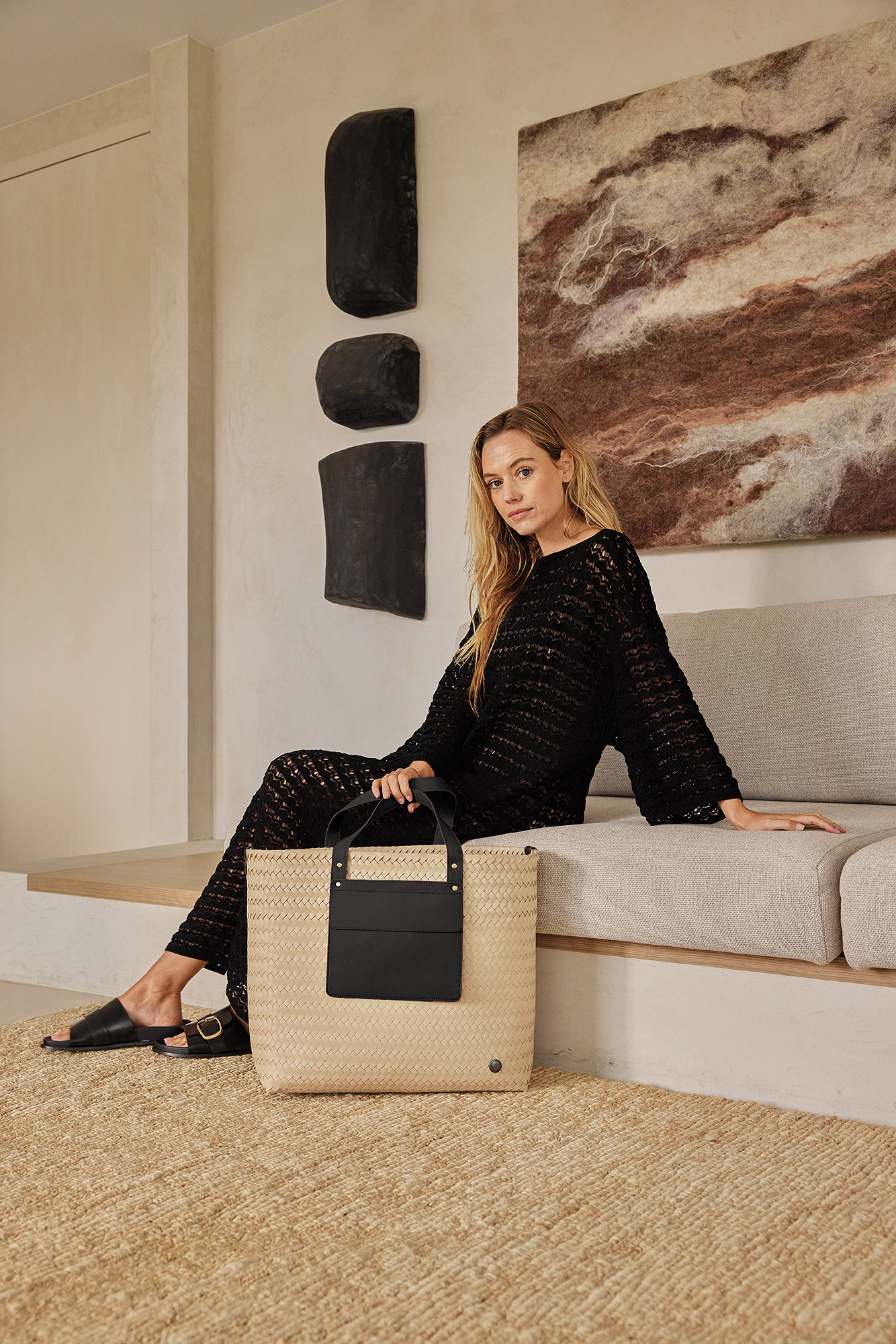 Die 'PERCEY' Shopper-Tasche - eine geräumige, handgeflochtene Tasche mit funktionellem Design. Dank der doppelten Griffe bietet die 'PERCEY' mehrere Tragemöglichkeiten: Mit den kurzen Griffen lässt sich die Tasche leicht in der Hand tragen, mit den langen Griffen kann sie bequem über die Schulter oder als Umhängetasche getragen werden. Ein zusätzliches Detail ist die Tasche an der Außenseite, die der Tasche ein einzigartiges Aussehen verleiht und praktisch für kleine Gegenstände ist, die man schnell zur Hand haben möchte. Die 'PERCEY' wird in einer neutralen Grundfarbe geliefert, wobei Sie für die Griffe und die Außentasche eine kontrastierende Farbe wählen können. Perfekt für alle, die ein bisschen mehr Platz brauchen, sei es für die Arbeit, zum Einkaufen oder für einen Tagesausflug! Handgeflochten aus recyceltem Kunststoff.