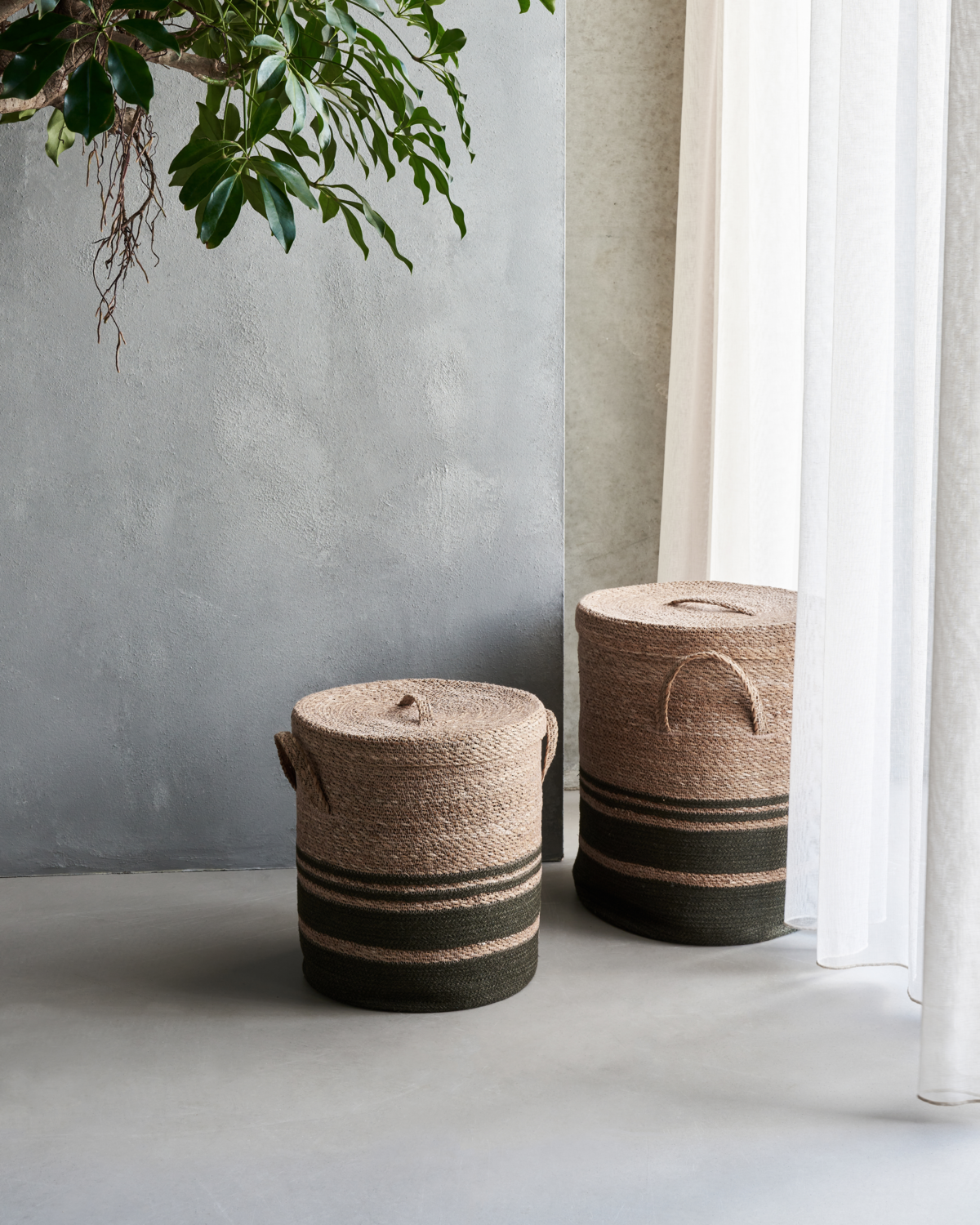 Mit diesem handgearbeitetem Korb mit Deckel von House Doctor kommt Ordnung in die Wäsche. Dein Zimmer strahlt Ruhe aus und wirkt aufgeräumt, während die dunkelgrünen Streifen unten den lässigen Look des Laundry-Korbes unterstreichen. Der Korb eignet sich auch prima zur Aufbewahrung, beispielsweise in der Ecke des Wohnzimmers oder im Schlafzimmer.