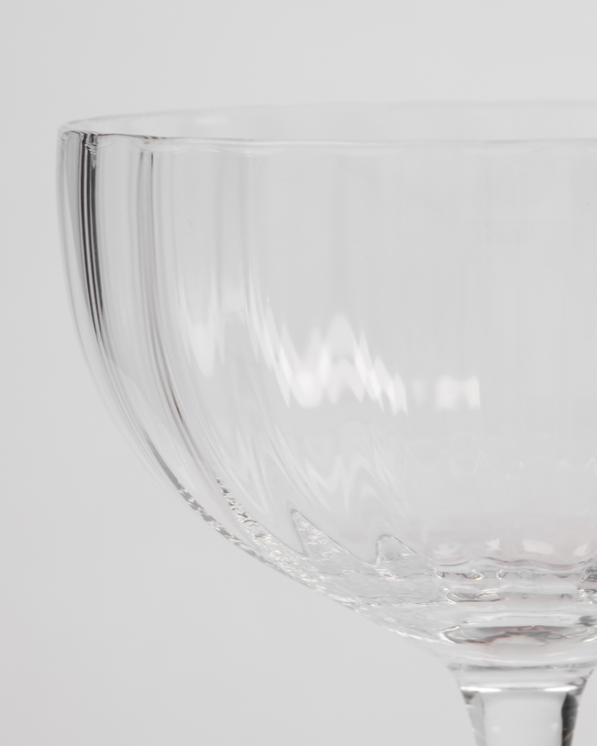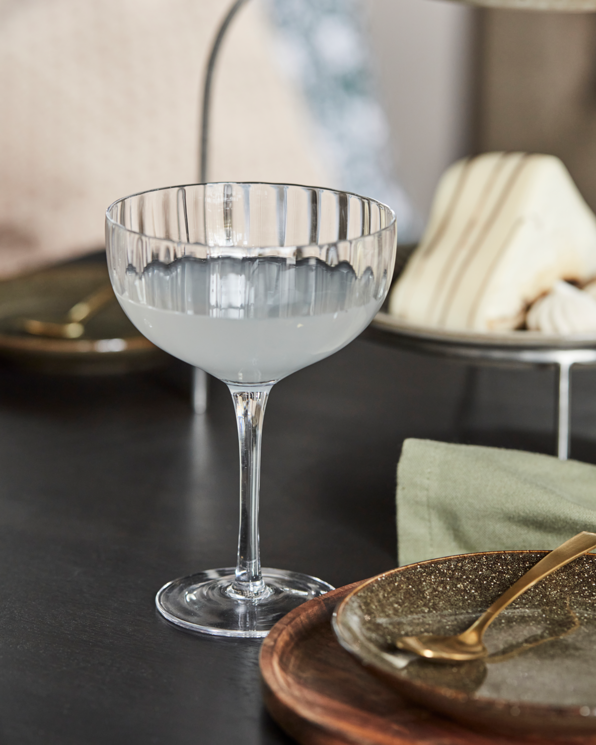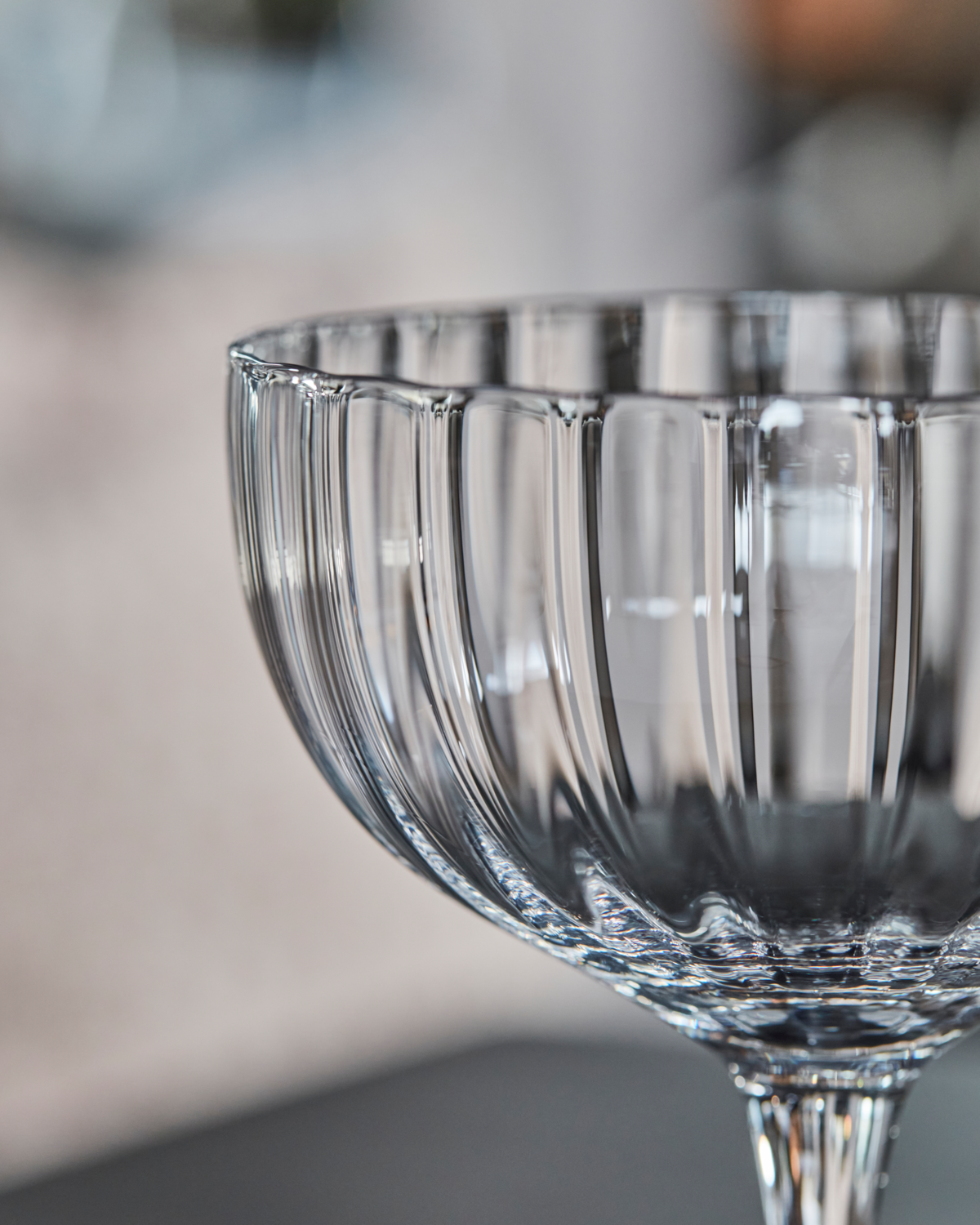Ein klassisches Cocktailglas ist ein Muss in jeder Hausbar. Das Design ist auch als Coupe bekannt und eignet sich auch für Champagner, wenn du es traditionell magst. Das geriffelte Design ist ein dezentes Detail, das gut auf jeden Tisch passt und der Stiel verhindert, dass dein Getränk warm wird.
