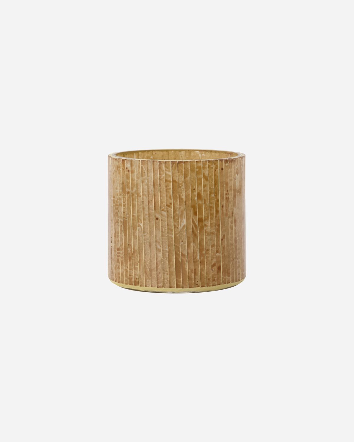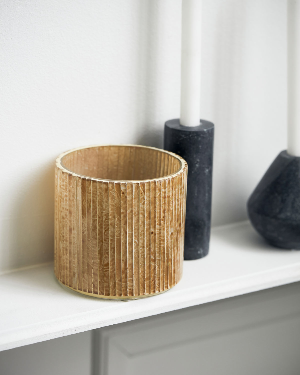 Manchmal haben kleine Veränderung eine große Wirkung. Mit einem neuen Teelichthalter kannst du deinen ganzen Interior-Style neu ausrichten. Mirr von House Doctor ist das perfekte Beispiel dafür, wie dezente Details die Optik und Stimmung deines Wohnzimmers vollkommen verändern können. Der kleine Teelichthalter kommt mit einem goldenen Mosaikmuster, das der Oberfläche Struktur und Glanz verleiht. Kombiniere ihn mit Keramikvasen und Metalldeko in Goldtönen, um auf einen einheitlichen Look zu setzen, oder stelle ihn zusammen mit dem größeren Mirr-Teelichthalter auf einem Fensterbrett auf, um das schöne Mosaikmuster in den Vordergrund zu rücken. Spiele mit verschiedenen Materialien, Farben und Formen herum, um ein ganz einzigartiges Arrangement für deinen Esstisch oder dein Fensterbrett zu erhalten. Da der Teelichthalter handgemacht ist, können Finish und Farbe variieren.