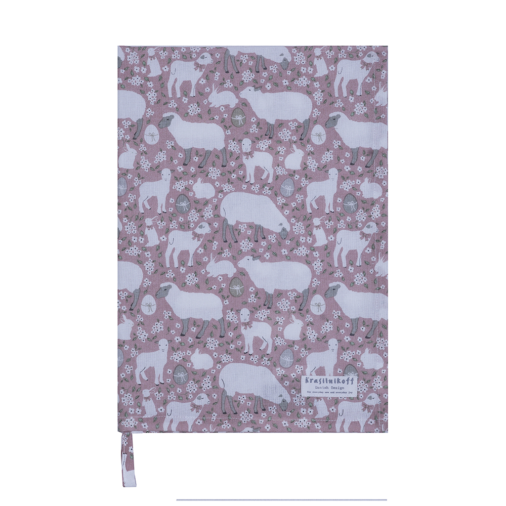 Krasilnikoff Geschirrtuch Lämmchen und Hasen Rosé