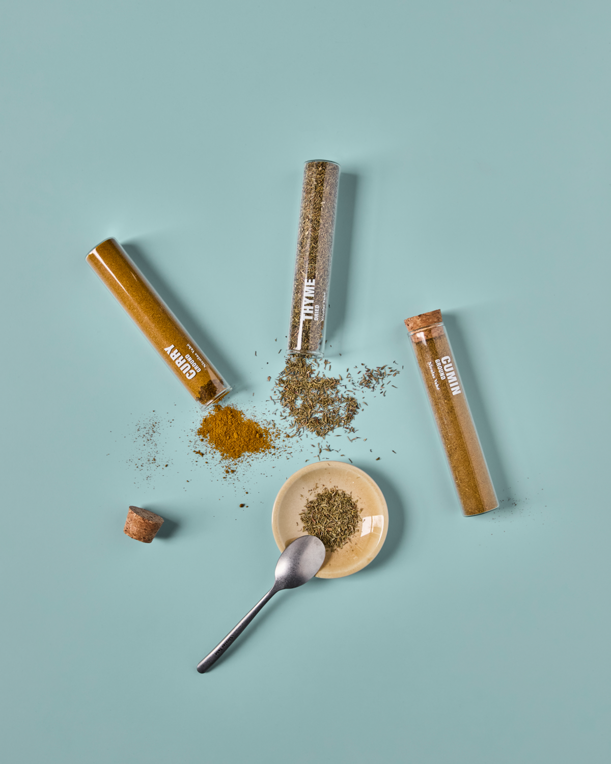 Inhalt: Curry 43g, Thymian 15g, Kreuzkümmel 42g.
